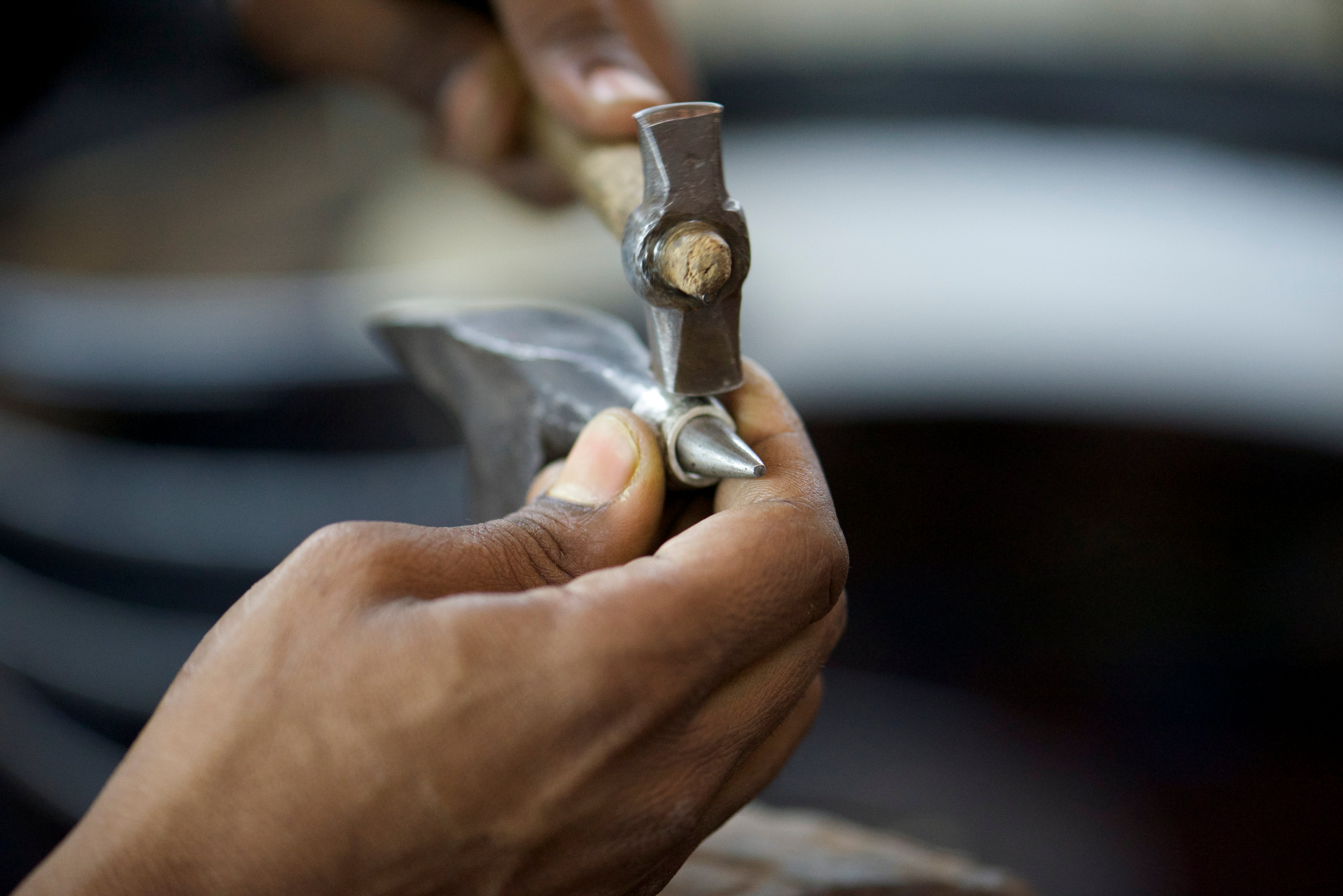 The journey to make this piece blends sustainable innovation with tradition. That sounds catchy, but how is that done? We take discarded brass pieces, the scraps once deemed unworthy, and refine them into stunning statement accessories. They are then handcrafted using generations-old techniques, honoring traditional artistry while embracing modern innovation and design. At the end, the frames are wrapped with a layer of 18kt gold to add the finishing touch.